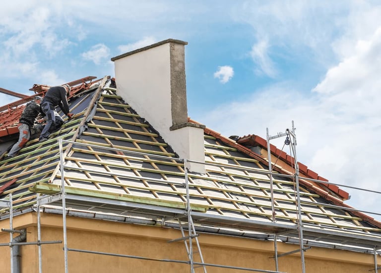 Pose complète de toiture en tuiles modernes.